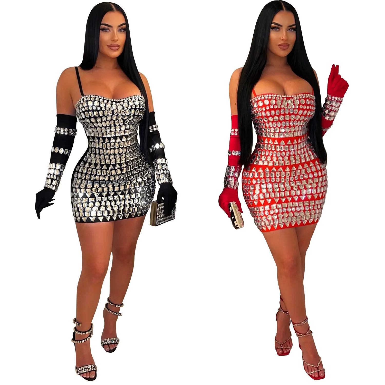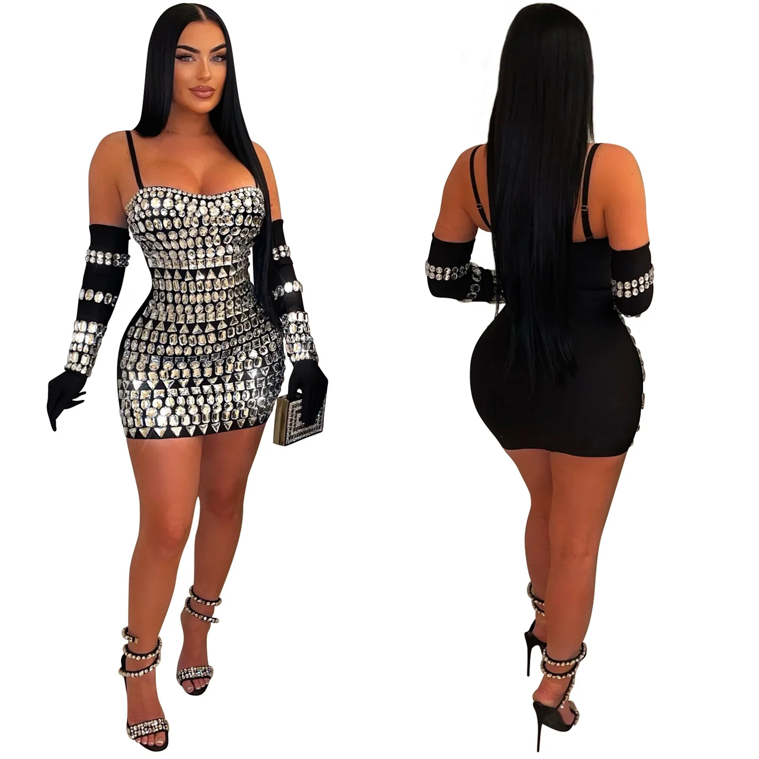 In Stock Women Backless Sexy Night Club Dress Strap Big Crystal Bodycon Evening Party Dress